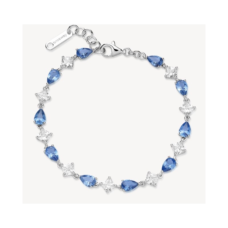 Bracciale in argento rodiato 925‰ con square cubic zirconia e pear cubic zirconia colore sapphire.