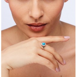Anello in argento rodiato 925‰ con cubic zirconia chiari e cubic zirconia colore sapphire.