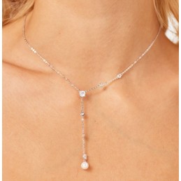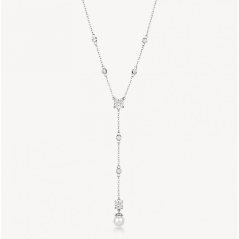 Collana girocollo in argento rodiato 925‰ e pendente con square cubic zirconia e pear cubic zirconia colore sapphire.