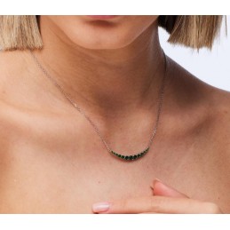 Collana girocollo in argento rodiato 925‰ con cubic zirconia colore Smeraldo
