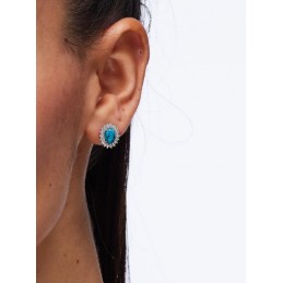 Orecchini a lobo Kate in argento rodiato 925‰ con turchese ricostruito e cubic zirconia.