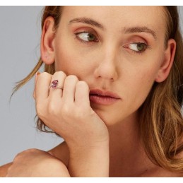 Anello in argento rodiato 925‰ con pear cubic zirconia colore ruby.