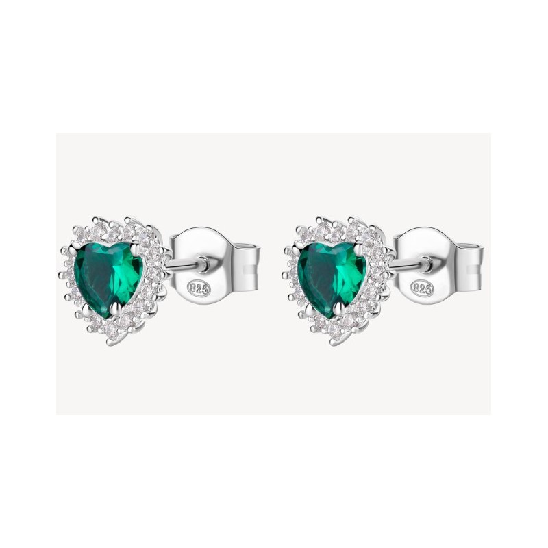 Orecchini Kate a lobo a forma di cuore in argento rodiato 925‰ con cubic zirconia chiari e cubic zirconia colore emerald.