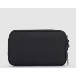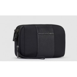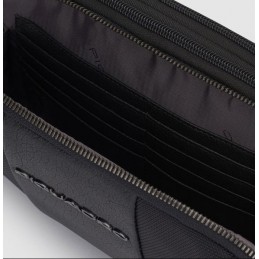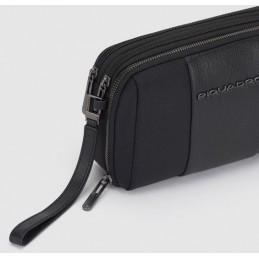 Pochette uomo a due scomparti in tessuto riciclato e pelle con porta carte di credito, protezione RFID e polsiera rimovibile