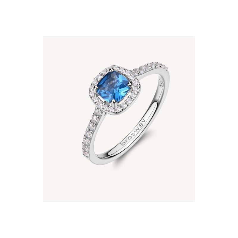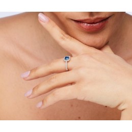 Anello in argento rodiato 925‰ con cubic zirconia chiari e cubic zirconia colore sapphire.