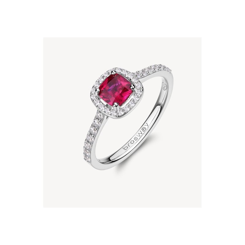 Anello in argento rodiato 925‰ con cubic zirconia chiari e cubic zirconia colore ruby.