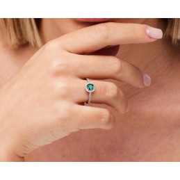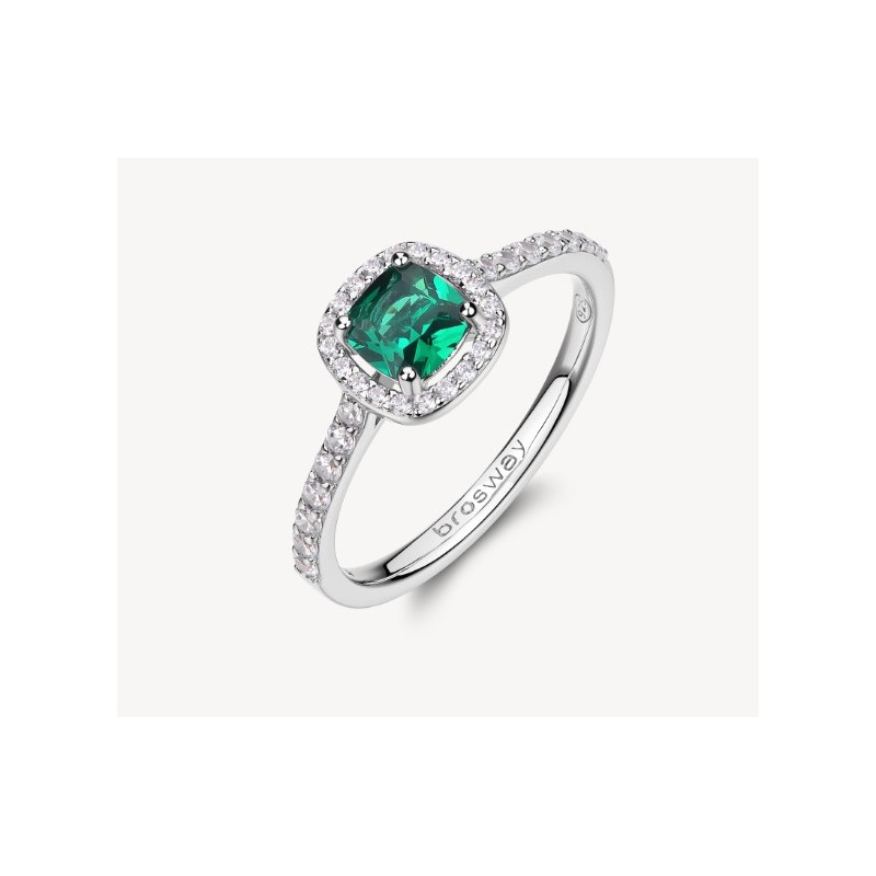 Anello in argento rodiato 925‰ con cubic zirconia chiari e cubic zirconia colore Smeraldo