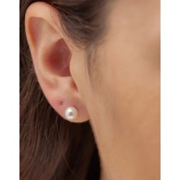 Orecchini a lobo in argento rodiato 925‰ con perla.