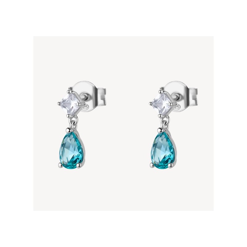 Orecchini pendenti in argento rodiato 925‰ con pear cubic zirconia white e colore paraiba.