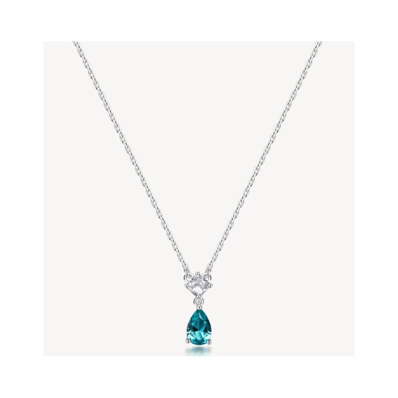 Collana in argento rodiato 925‰ con cubic zirconia chiari e pear cubic zirconia colore paraiba.